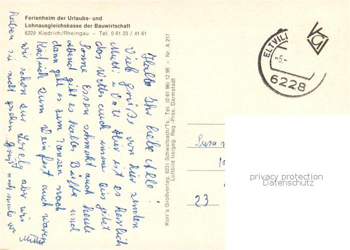 73686994 alte Postkarte Kiedrich Ferienheim Kiedrich Fliegeraufnahme postalisch gelaufen Erhaltung siehe scans [WerneD78] KatCode: 11110006439009