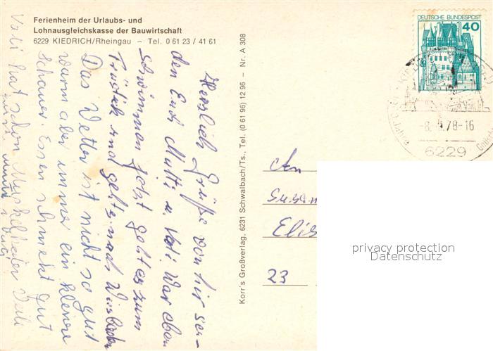 73686987 alte Postkarte Kiedrich Ferienheim Kiedrich Speiseraeume Minigolf Pferdekoppel Foyer postalisch gelaufen Erhaltung siehe scans [WerneD78] KatCode: 11110006439009