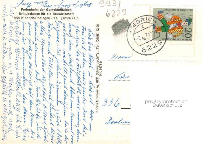 72859940 alte Postkarte Kiedrich Fliegeraufnahme Ferienheim der Gemeinnuetzigen postalisch gelaufen Erhaltung siehe scans [LiesaD40] KatCode: 11110006439009