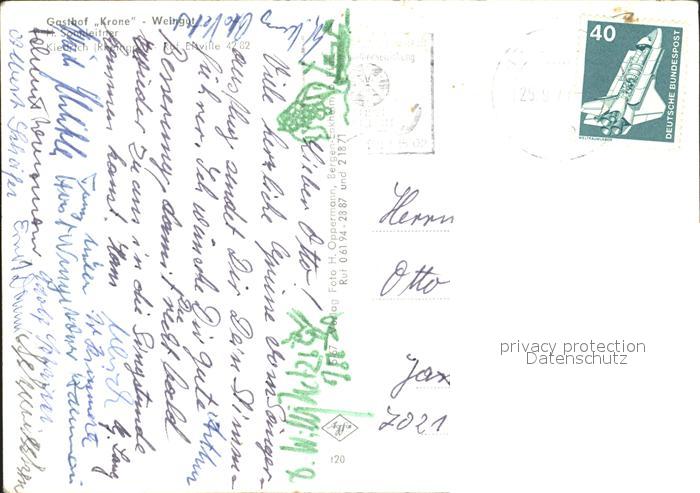 72055332 alte Postkarte Kiedrich Gasthof Krone Weingut postalisch gelaufen KatCode: 11110006439009