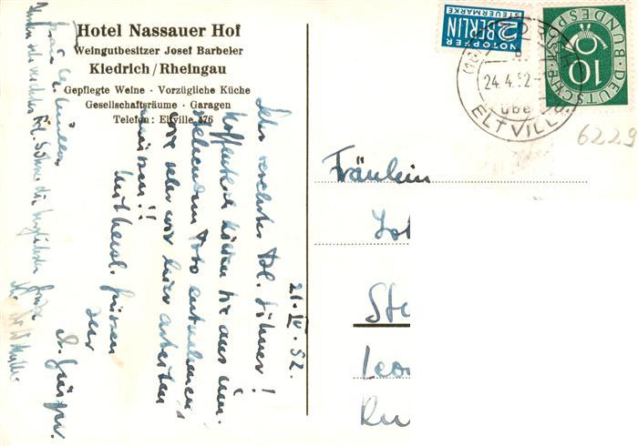73887036 Kiedrich Hotel Nassauer Hof Gastraum postalisch nicht gelaufen Erhaltung siehe scans [FriedD77] KatCode: 11110006439009