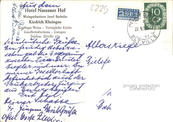 41581278 Kiedrich Hotel Nassauer Hof postalisch gelaufen Erhaltung siehe scans Alte Ansichtskarte Postkarte alte Postkarte Stef Katcode 11110006439009