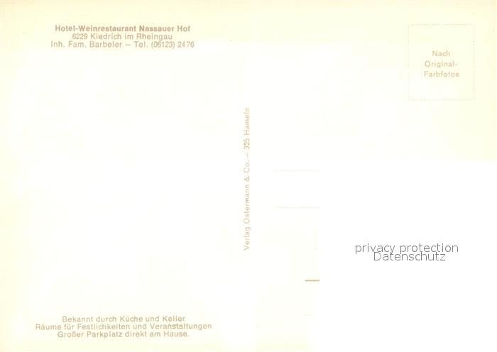 73081229 Kiedrich Hotel Weinrestaurant Nassauer Hof postalisch nicht gelaufen Erhaltung siehe scans [FriedD77] KatCode: 11110006439009