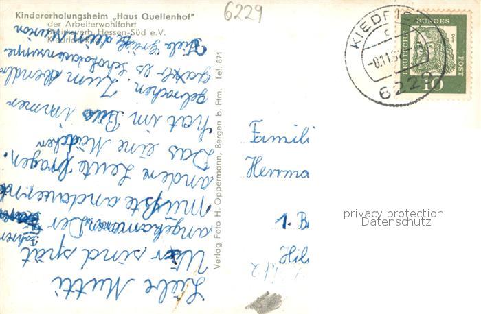 73706522 alte Postkarte Kiedrich Kindererholungsheim Haus Quellenhof der AWO postalisch gelaufen Erhaltung siehe scans [WerneD78] KatCode: 11110006439009
