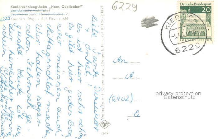 73706520 alte Postkarte Kiedrich Kindererholungsheim Haus Quellenhof postalisch gelaufen Erhaltung siehe scans [WerneD78] KatCode: 11110006439009
