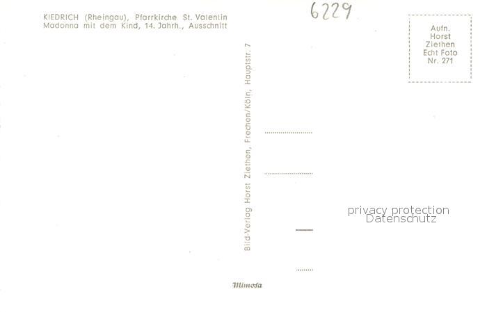 73696466 Kiedrich Pfarrkirche St. Valentin Madonna mit Kind 14. Jhdt. postalisch nicht gelaufen Erhaltung siehe scans [FriedD77] KatCode: 11110006439009