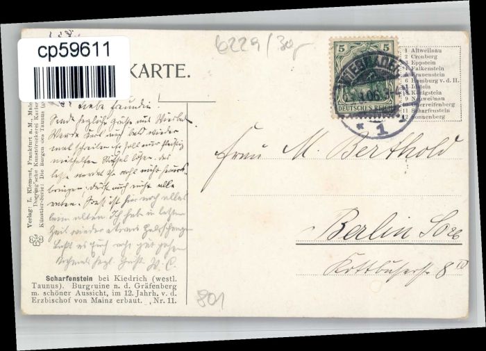 70784836 alte Postkarte Kiedrich ScharfensteinKuenstler G Rothgeb postalisch gelaufen KatCode: 11110006439009
