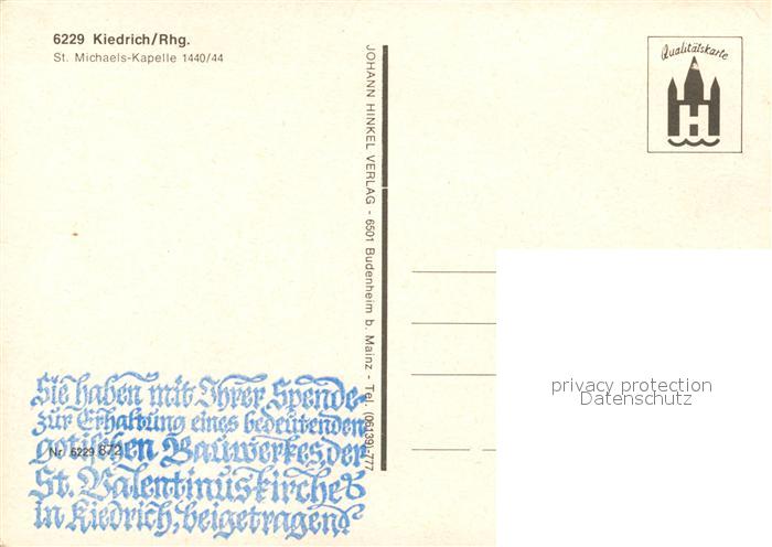 73259897 Kiedrich St Michaels Kapelle 15. Jhdt. postalisch nicht gelaufen Erhaltung siehe scans [PaolaD17] KatCode: 11110006439009