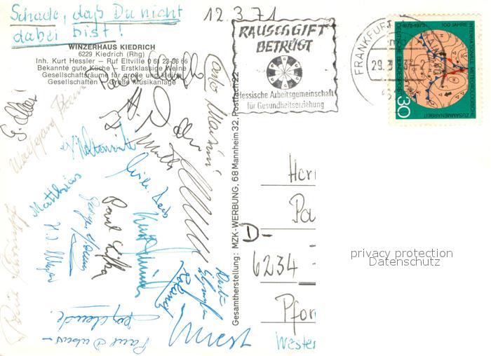 73723234 alte Postkarte Kiedrich Winzerhaus Kiedrich Gaststube Weinkeller postalisch gelaufen Erhaltung siehe scans [WerneD78] KatCode: 11110006439009