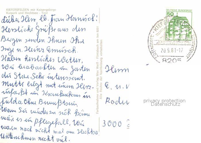 72814484 alte Postkarte Kiefersfelden Kurpark Hechtsee Fontaene Panorama postalisch gelaufen Erhaltung siehe scans [WerneD78] KatCode: 11110009187148