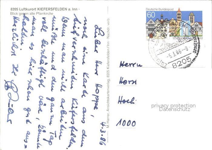 72141565 alte Postkarte Kiefersfelden Teilansicht mit alter Pfarrkirche postalisch gelaufen Erhaltung siehe scans KatCode: 11110009187148