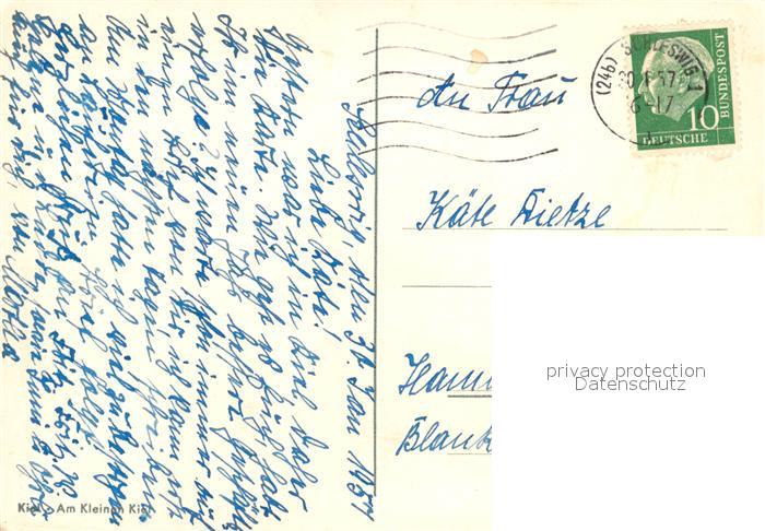 73247707 alte Postkarte Kiel Am Kleinen Kiel postalisch gelaufen Erhaltung siehe scans [NatalD47] KatCode: 11110001002000