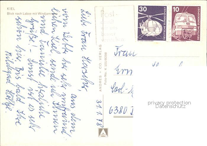 Kiel Blick nach Laboe Windjammer postalisch nicht gelaufen Erhaltung siehe scans