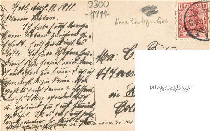 33702050 KIEL CITY Bismarck Denkmal postalisch gelaufen Erhaltung siehe scans [WerneD78] alte Postkarte Wern Katcode 11110001002000