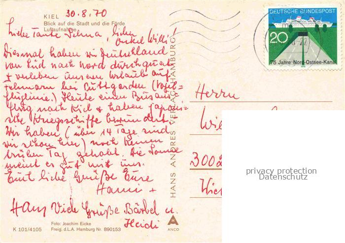 74122044 alte Postkarte KIEL CITY Blick auf Stadt und Foerde Fliegeraufnahme postalisch gelaufen Erhaltung siehe scans [WerneD78] KatCode: 11110001002000