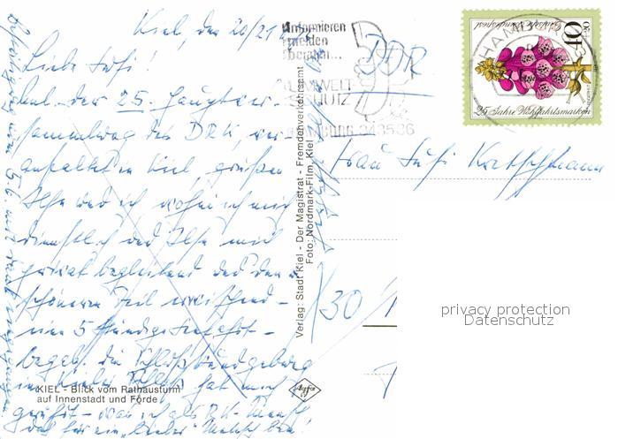72709308 alte Postkarte KIEL CITY Blick vom Rathausturm auf Innenstadt und Foerde postalisch gelaufen Erhaltung siehe scans [LiesaD40] KatCode: 11110001002000