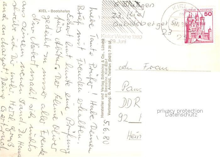 73013696 alte Postkarte KIEL CITY Bootshafen postalisch gelaufen Erhaltung siehe scans [WerneD78] KatCode: 11110001002000