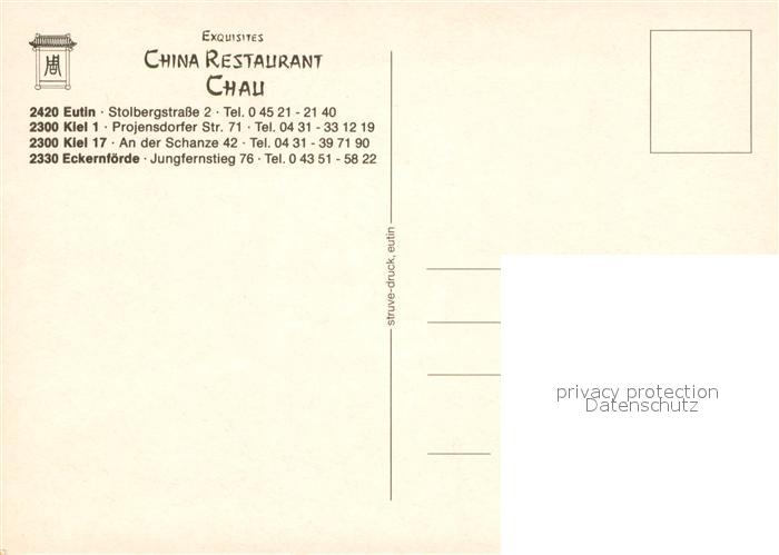 73687658 KIEL CITY China Restaurant Chau postalisch nicht gelaufen Erhaltung siehe scans [FriedD77] Frie Katcode 11110001002000