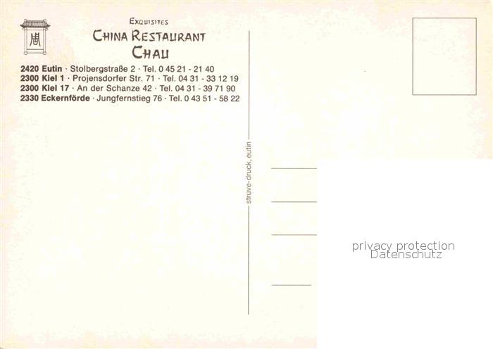 72893780 KIEL CITY China Restaurant Chau postalisch nicht gelaufen Erhaltung siehe scans [AndreD76] KatCode: 11110001002000