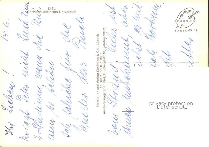 72398178 KIEL CITY Christian Albrechts Universitaet postalisch nicht gelaufen Erhaltung siehe scans KatCode: 11110001002000