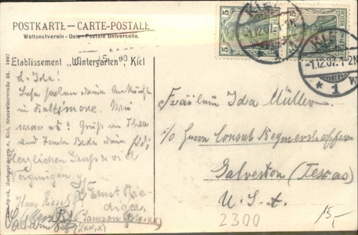 40844561 KIEL CITY Etablissement Wintergarten postalisch gelaufen Alte Ansichtskarte Postkarte alte Postkarte Katcode 11110001002000