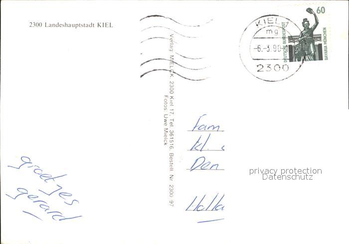 72310171 alte Postkarte KIEL CITY Faehre Segelboot Hafen postalisch gelaufen Erhaltung siehe scans KatCode: 11110001002000
