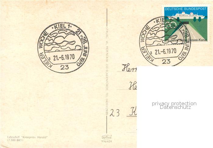 73768618 KIEL CITY Faehrschiff Kronpris Harald postalisch gelaufen Erhaltung siehe scans [WerneD78] alte Postkarte Wern Katcode 11110001002000