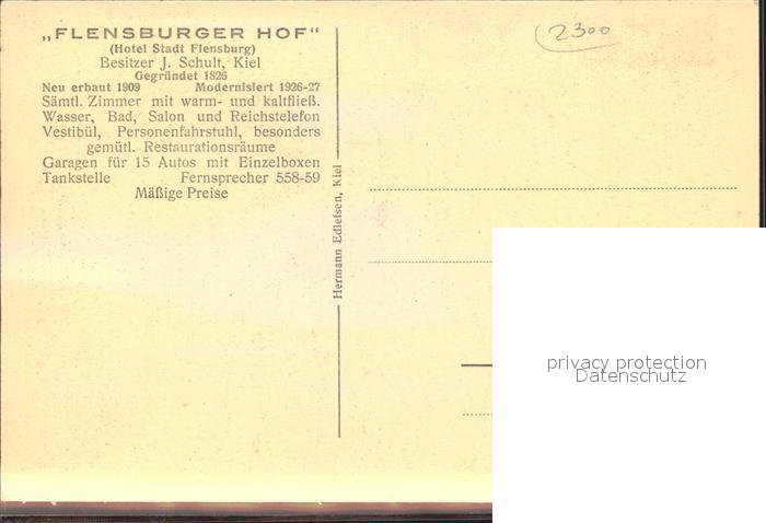 42073085 KIEL CITY Flensburger Hof Entree postalisch nicht gelaufen Erhaltung siehe scans KatCode: 11110001002000