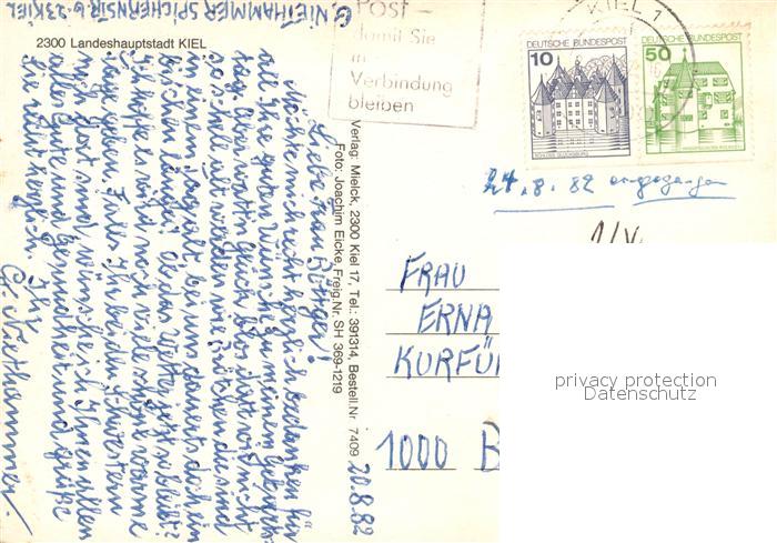 73087514 alte Postkarte KIEL CITY Fliegeraufnahme postalisch gelaufen Erhaltung siehe scans [NatalD47] KatCode: 11110001002000