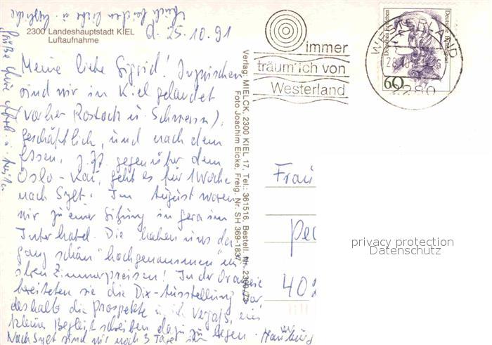72852093 alte Postkarte KIEL CITY Fliegeraufnahme postalisch gelaufen Erhaltung siehe scans [NatalD47] KatCode: 11110001002000