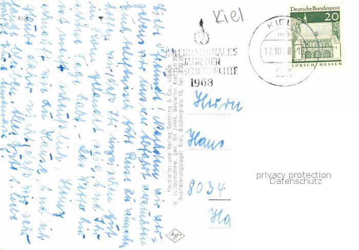 72796032 alte Postkarte KIEL CITY Fliegeraufnahme postalisch gelaufen Erhaltung siehe scans [AndreD76] KatCode: 11110001002000