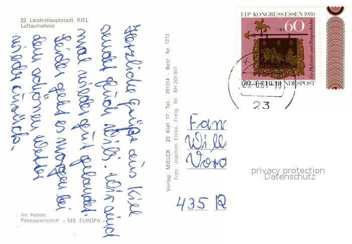 72792396 alte Postkarte KIEL CITY Fliegeraufnahme postalisch gelaufen Erhaltung siehe scans [LiesaD40] KatCode: 11110001002000