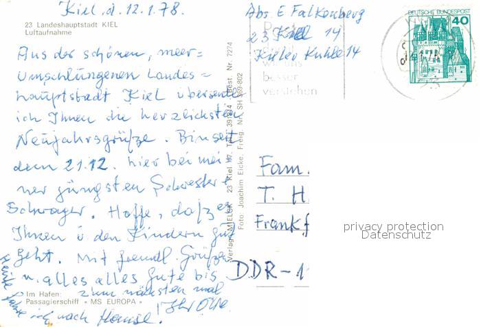72687220 alte Postkarte KIEL CITY Fliegeraufnahme postalisch gelaufen Erhaltung siehe scans [WerneD78] KatCode: 11110001002000