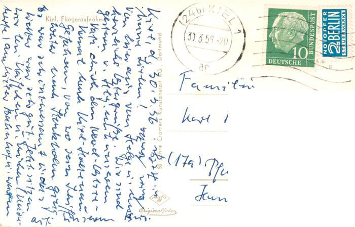 73900075 KIEL CITY Fliegeraufnahme postalisch gelaufen Erhaltung siehe scans [FriedD77] alte Postkarte Frie Katcode 11110001002000