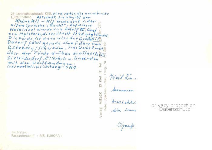 72664569 alte Postkarte KIEL CITY Fliegeraufnahme postalisch gelaufen Erhaltung siehe scans [AndreD76] KatCode: 11110001002000
