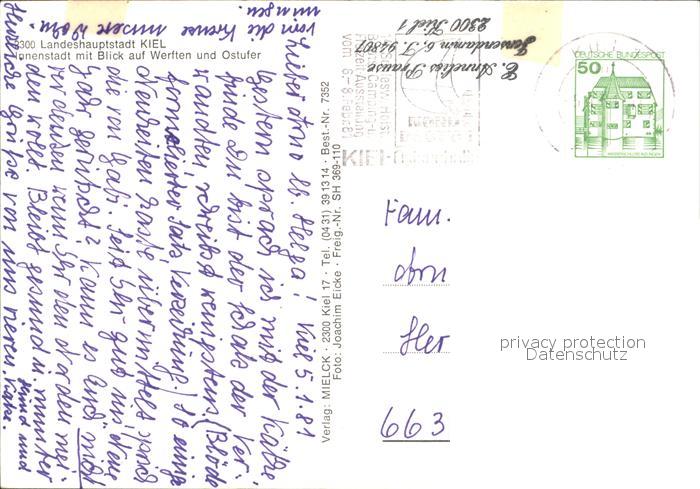 72397561 alte Postkarte KIEL CITY Fliegeraufnahme postalisch gelaufen Erhaltung siehe scans KatCode: 11110001002000