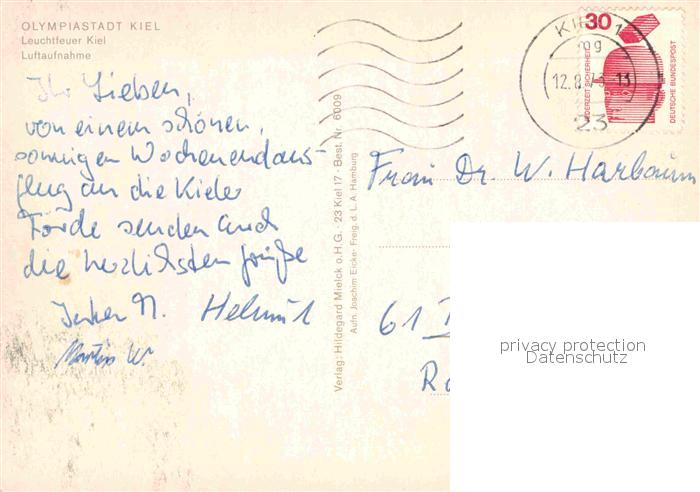 72785671 alte Postkarte KIEL CITY Fliegeraufnahme Leuchtfeuer postalisch gelaufen Erhaltung siehe scans [AndreD76] KatCode: 11110001002000