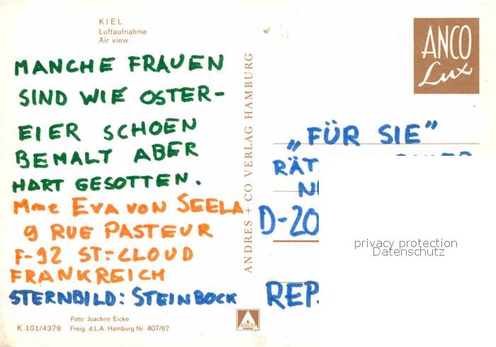 72866790 KIEL CITY Fliegeraufnahme mit Hafen postalisch nicht gelaufen Erhaltung siehe scans [LiesaD40] KatCode: 11110001002000