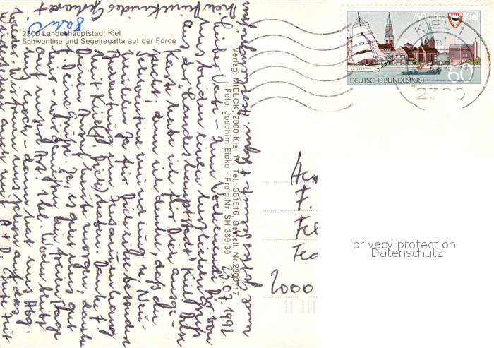 72969881 alte Postkarte KIEL CITY Fliegeraufnahme Schwentine und Segelregatte auf der Foerde postalisch gelaufen Erhaltung siehe scans [LiesaD40] KatCode: 11110001002000