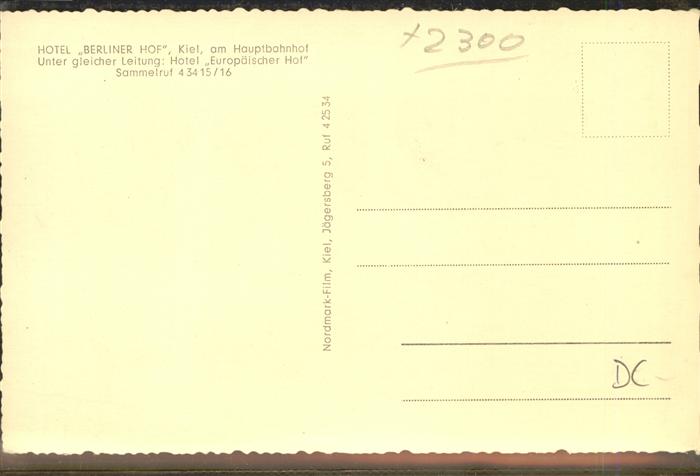 41070082 KIEL CITY Hotel Berliner Hof postalisch nicht gelaufen Alte Ansichtskarte Postkarte Elvi Katcode 11110001002000