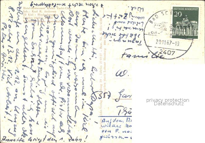 72315454 alte Postkarte KIEL CITY Hotel Restaurant Kieler Yachtclub postalisch gelaufen Erhaltung siehe scans KatCode: 11110001002000