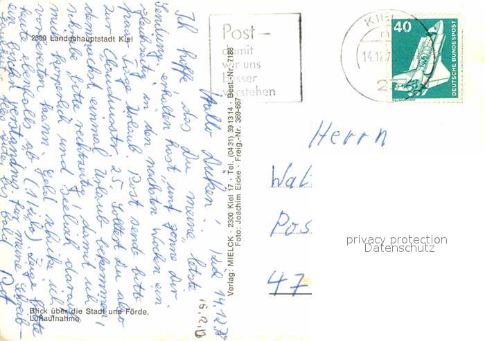 72752420 alte Postkarte KIEL CITY Innenstadt Landeshauptstadt Fliegeraufnahme postalisch gelaufen Erhaltung siehe scans [FriedD77] KatCode: 11110001002000
