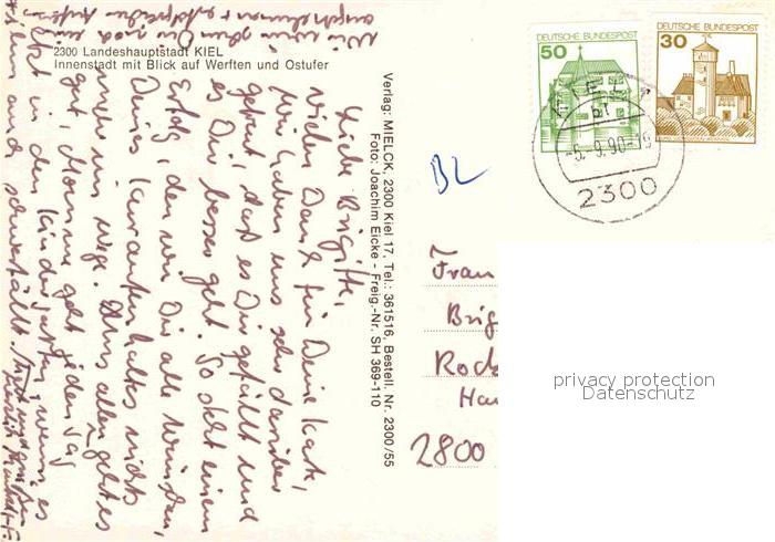 72848153 alte Postkarte KIEL CITY Innenstadt Werften Ostufer Landeshauptstadt Fliegeraufnahme postalisch gelaufen Erhaltung siehe scans [FriedD77] KatCode: 11110001002000