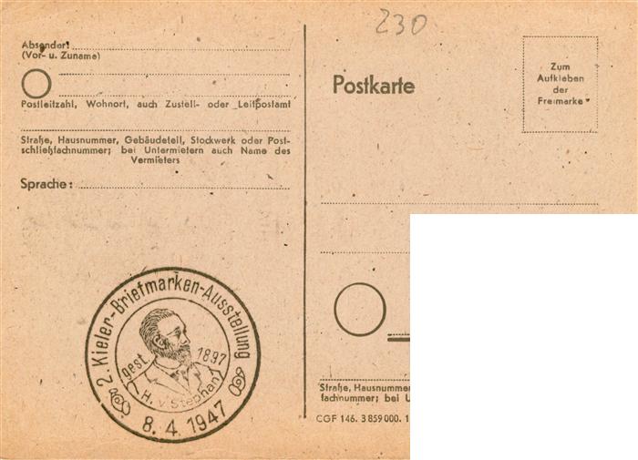 73876978 KIEL CITY Kieler Briefmarken Ausstellung 1947 postalisch gelaufen Erhaltung siehe scans [FriedD77] alte Postkarte Frie Katcode 11110001002000