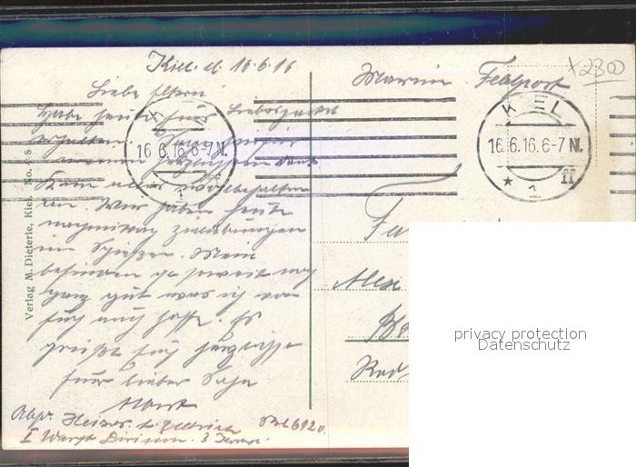 42072841 alte Postkarte KIEL CITY Kleiner Kiel Universitaet Kaiser Wilhelm Denkmal postalisch gelaufen Feldpost Erhaltung siehe scans KatCode: 11110001002000