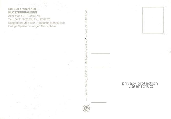 73782530 KIEL CITY Klosterbrauerei Innenansichten postalisch nicht gelaufen Erhaltung siehe scans [LiesaD40] Lies Katcode 11110001002000