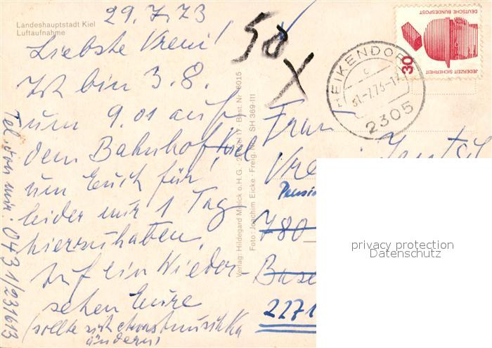 73080491 alte Postkarte KIEL CITY Landeshauptstadt Fliegeraufnahme postalisch gelaufen Erhaltung siehe scans [FriedD77] KatCode: 11110001002000