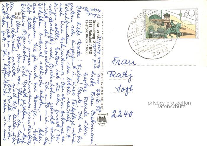 72540214 alte Postkarte KIEL CITY Markt postalisch gelaufen Erhaltung siehe scans [AndreD76 kt119box] KatCode: 11110001002000