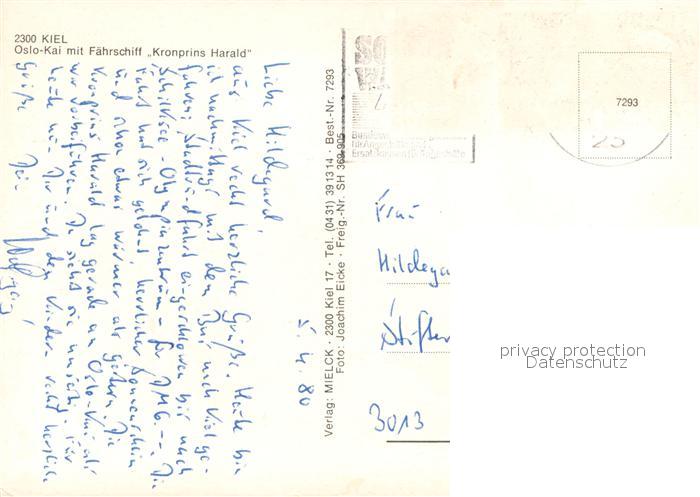 73667930 KIEL CITY Oslo Kai mit Faehrschiff Kronprins Harald Fliegeraufnahme postalisch gelaufen Erhaltung siehe scans [FriedD77] alte Postkarte Frie Katcode 11110001002000