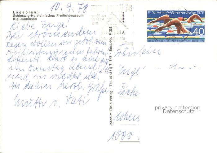 72015222 alte Postkarte KIEL CITY Rammsee Lageplan Freilichtmuseum postalisch gelaufen Erhaltung siehe scans KatCode: 11110001002000